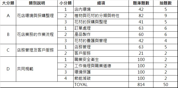 【115花店從業技能職類(初級)測驗】學科題庫及考題抽選